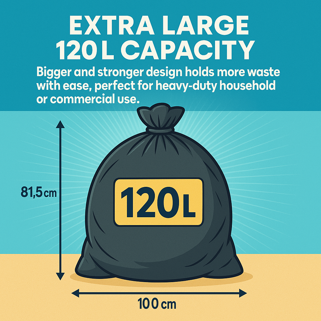 120L, Heavy Duty, Extra Strong, Tie Top, 40 Microns, Large Refuse Sacks