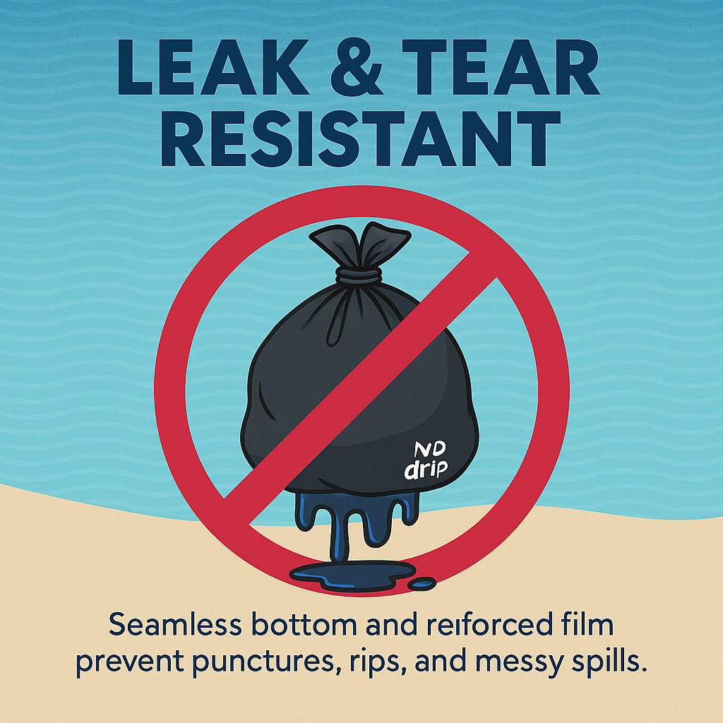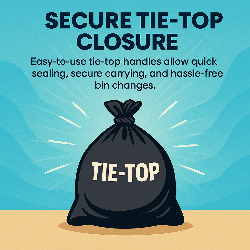Tie Top Design: Quick and secure closure to prevent spills and leaks.