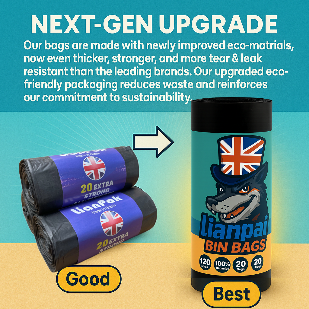 Introducing Lianpak Extra Strong 120L All-Purpose Refuse Sacks, the ultimate solution for your waste disposal needs. Designed for household, office, kitchen, and catering use, these 120L bags are perfect for handling large volumes of waste. Featuring innovative FlexTech technology, they provide superior strength and tear resistance, ensuring durability and reliability. The soft touch material ensures comfortable handling, while the tie-top design allows for easy and secure closure, preventing spills and leaks. Made from 100% recycled plastic, these eco-friendly bags support sustainability while delivering top performance.